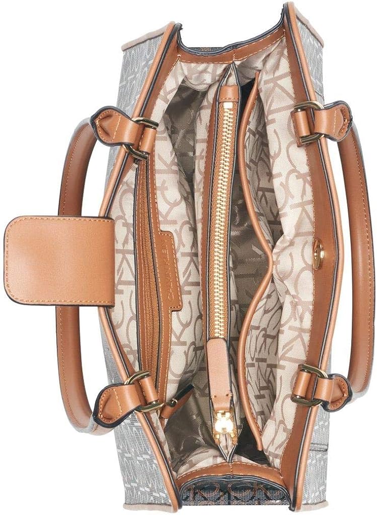 100% Man Made Imported Pockets: 4 slip, 2 zip, 3 exterior So luxe: Monogram leather handbag with signature Calvin Klein logo detail on the front; the perfect on-the-go addition for flaunting your style and your Calvin Klein women accessories Organize with style: Handbag purse with style and functionality; keep your valuables safe in the back anti-theft zipper pocket; incudes front and top zipper pockets with an open middle compartment Exude confidence: Flaunt this handbag for women made to pair with any style; the perfectly small handbag for any occasion from vacation to everyday wear