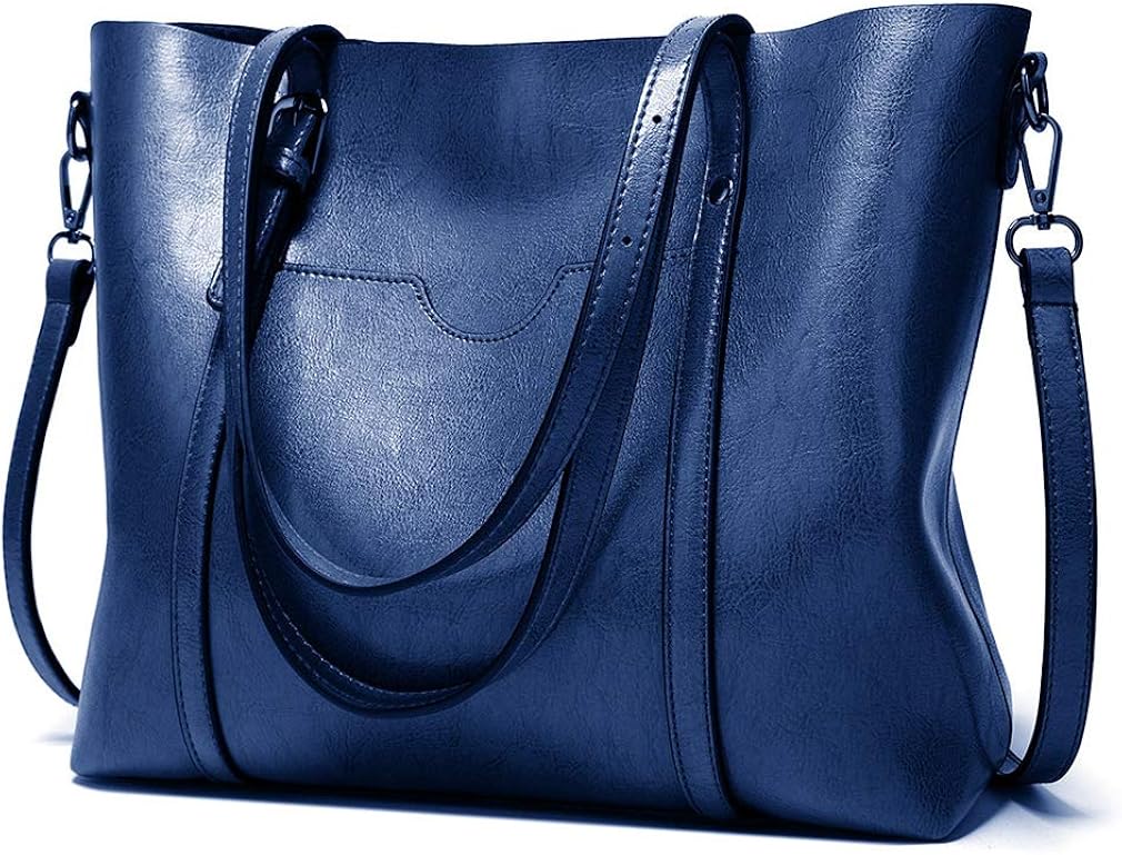 Leather     ❤ FASHION DESIGN: Pahajim large tote handbag has two handle straps which can adjust length and they are long enough to carry on shoulder. Furthermore, this hand bag has a removable matching crossbody strap. You can carry this bag in 2 ways: shoulder bag or handbag. The unqiue and fashion style is easy to go with, you can carry it to school, college, office, shopping, traveling and dating.     ❤ UPDATED VERSION: Pahajim fashion working handbag is made of high quality artificial leather(environmentally-friendly synthetic leather, not genuine leather) with all stitches in neat and orderly rows. There is a anti-theft zipper on the top of the bag. Waterproof material, easy to clean, sturdy, durable , anti-scratch, anti-wear, smooth zipper, polyester lining, nice workmanship.     ❤ DIMENSIONS: 12.6"L x 11.4"H x 4.7"W. Height of Handle: 9". Weight: 1.6 lb. This hobo shoulder bag has plenty of space to carry your daily necessities such as A4 magazines, portable textbooks, wallet, tablet computer, books, purses, mobile phone...If you want to use this bucket bag longer, it is recommended not to put too many heavy things inside.     ❤ STRUCTURE: Pahajim bucket handbag for women has a outside pocket for easy access. The main compartment of the bag is divided into three sections. One middle section with zipper closure which you can put wallet, cosmetics, paper towels inside. Two side sections which you can place laptop, tablet computer and books. There is a zipper pocket on one side of the main compartment for money, two inner pockets on the other side for small items such as mobile phones or keys. 4 bottom metal pads.     ❤ TIPS: This will be the perfect gift for wives, mothers, children and friends on Halloween, Thanksgiving and Christmas.Please refer to the size before you purchasing. Thanks for your kindly understanding. Customer satisfaction is our first priority. We provide quality guarantee and 5-star customer service. If you are not completely satisfied with your handbags, simply let us know and we will do our best to solve your problems.
