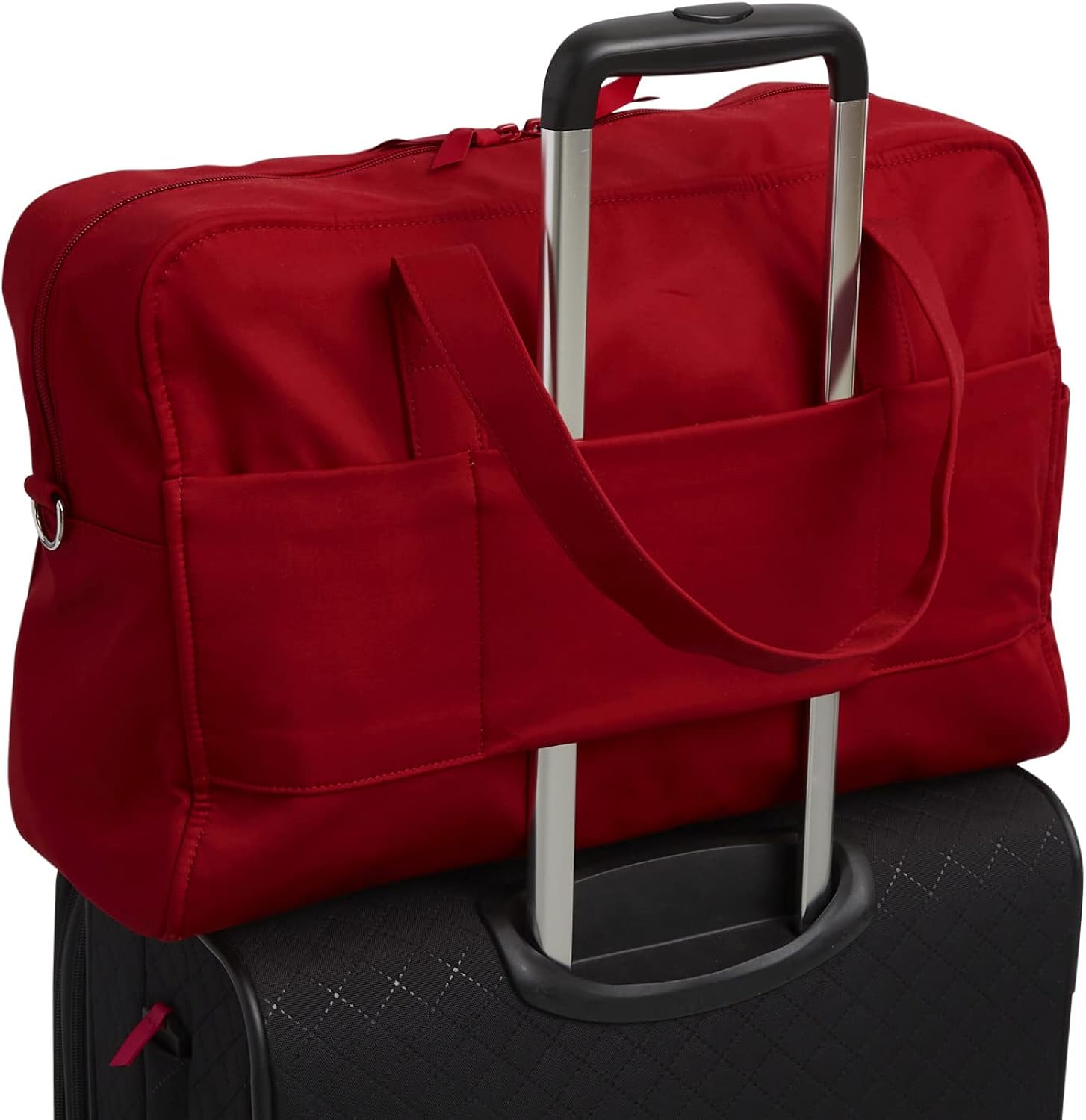 100% Cotton Imported RECYCLED COTTON – The cotton fabric that you’re familiar with has been reimagined; this sustainable fabric is made from recycled cotton fibers and has all of the comfort, softness, and vibrancy that you know and love. BE MOBILE WITH MULTIPLE BAGS -- With a 6 inch strap drop & a 53 inch removable, adjustable strap - you can grab the dual straps on the go or throw over your shoulder for hands-free attention - or utilize the trolley sleeve to attach to your luggage handle PACK IN STYLE -- Skip the extra carry on & take advantage of the interior pockets of this spacious travel bag featuring 5 mesh pockets to organize your cosmetics hair products jewelry & other toiletries ESSENTIALS AT YOUR FINGERTIPS -- The exterior features 1 slip pocket & 2 zip pockets - ideal for stowing wallets boarding passes reading material or snacks to keep them quick to access & soundly fastened for your flight STYLISH LIGHTWEIGHT & SIZED RIGHT -- The Weekender Travel Bag measures 13 inches high, 19 inches wide & 8 inches deep - giving you a spacious carryon compliant travel bag for your next getaway
