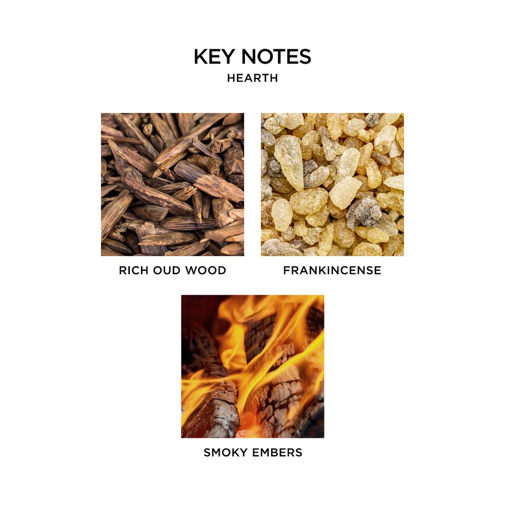 Opening with deep and rich oud wood accents, which are anchored further by hints of frankincense and smoky embers, this exquisitely scented coffee table essential evokes the ambience of a crackling fireplace. Made with premium wax and a glass vessel adorned by a festive design, this sense-exciting candle elevates your home with a luxurious feel. Something tells us you might have stumbled across the perfect match...