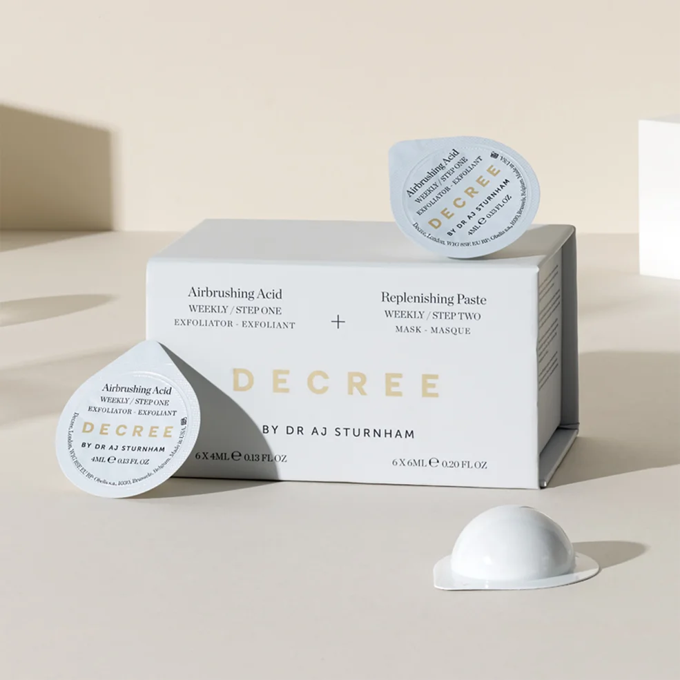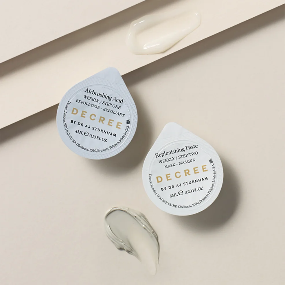 This ingenious double act has been cleverly designed to work as a once-a-week resurfacing treatment, granting brightening, smoothing and age-defying benefits to your complexion. A two-step process, it features an intensive acid exfoliator and a deeply hydrating mask – with a supply to last for six weeks. The Airbrushing Acid is a silky gel starring a blend of resurfacing alpha hydroxy acids (AHAs) and fruit enzymes to intensely exfoliate away dead and dulling skin cells to reveal the shiny new cells underneath – think: glowing, smoother textured and more even skin tone in one hit! Step two is the Replenishing Paste, a deeply nourishing crème mask crafted to restore moisture, hydration and skin-essential lipids for a contented, dewy and youthful-looking finish.