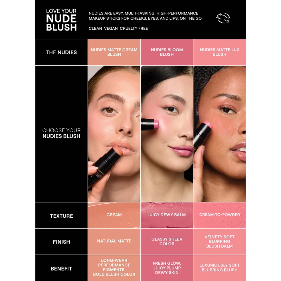 Nudies Matte Blush & Bronze by Nudestix are the perfect pick-me-up that can be used all over the face. Conveniently dual-ended with a block of colour at one end and a soft, densely bristled brush at the other, this stick is a one-stop ticket to flawless faces.